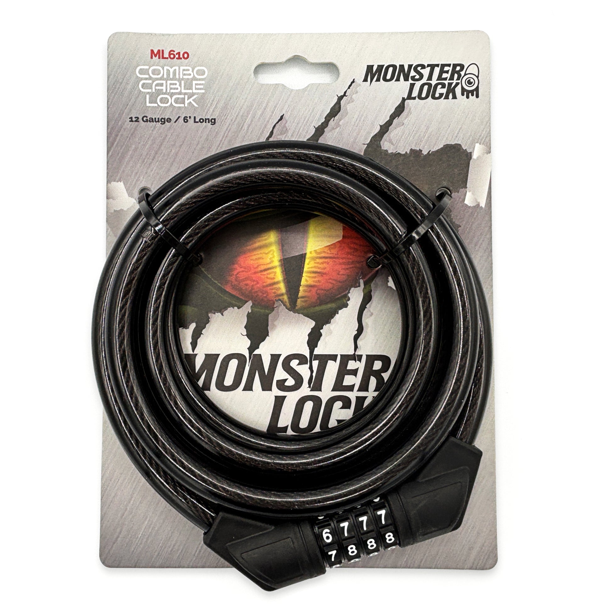 MONSTER LOCK 6 ft Combination Cable Lock – 13mm Braided Steel (ML610)