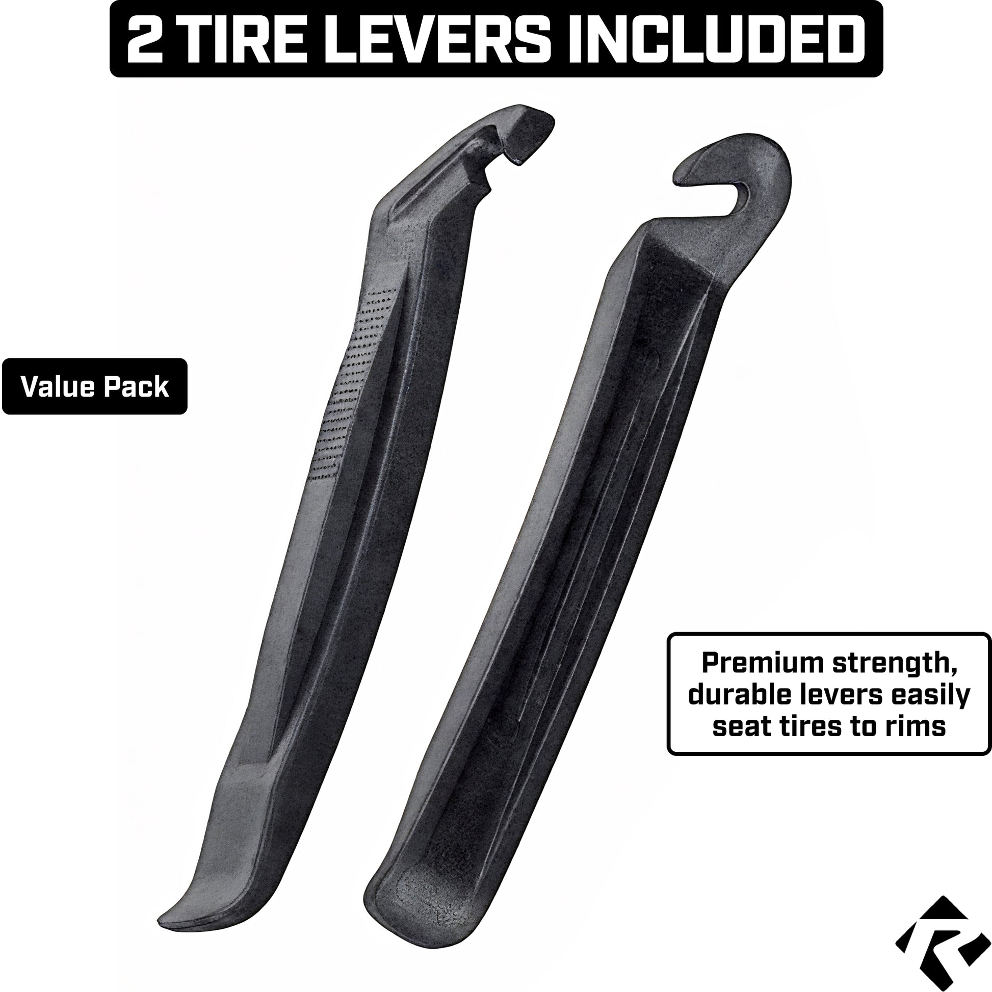 - 2 tire levers included – premium strength, durable levers easily seat tires to rims