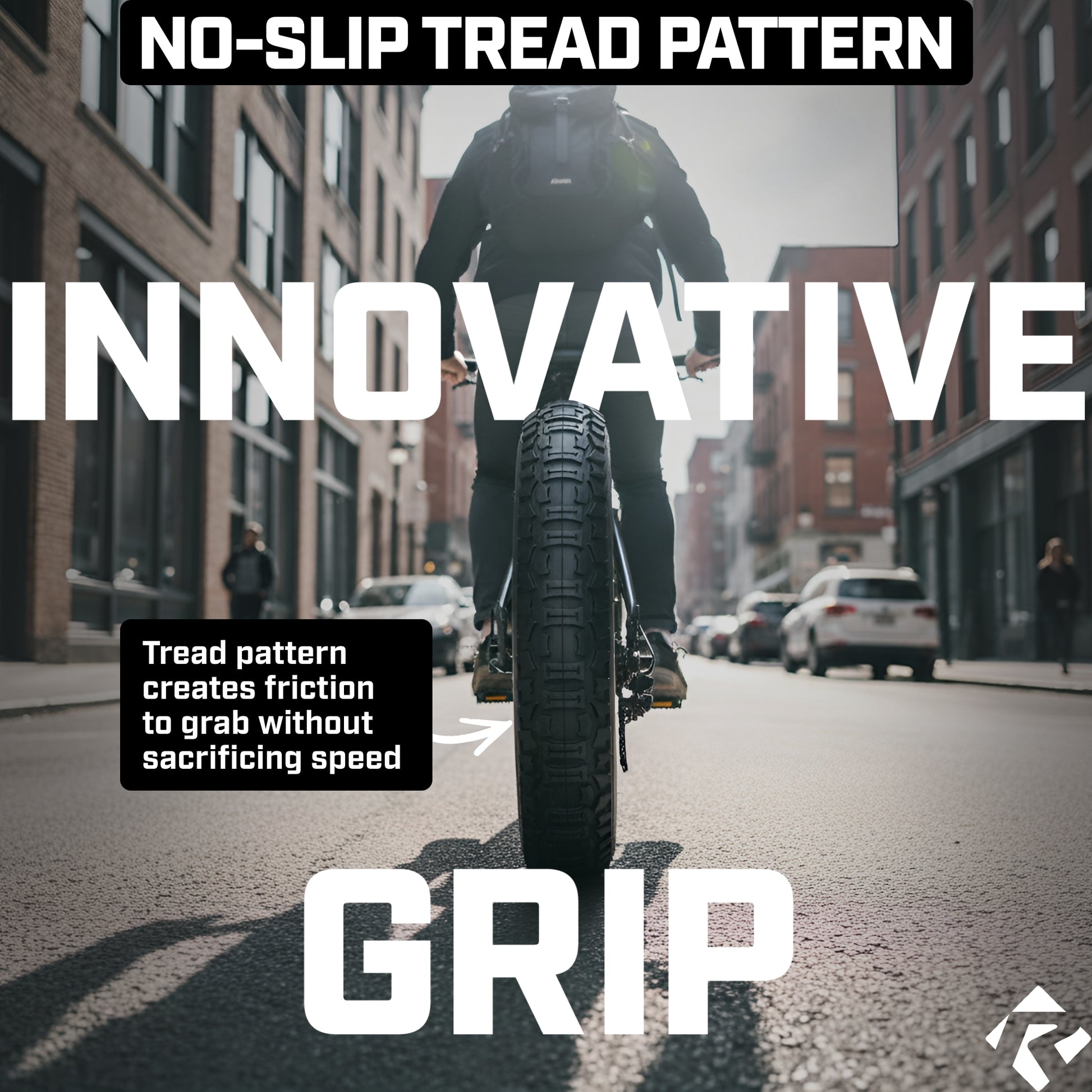 - Innovative grip, no-slip tread design – directional tread pattern geometry creates friction to grab without sacrificing speed