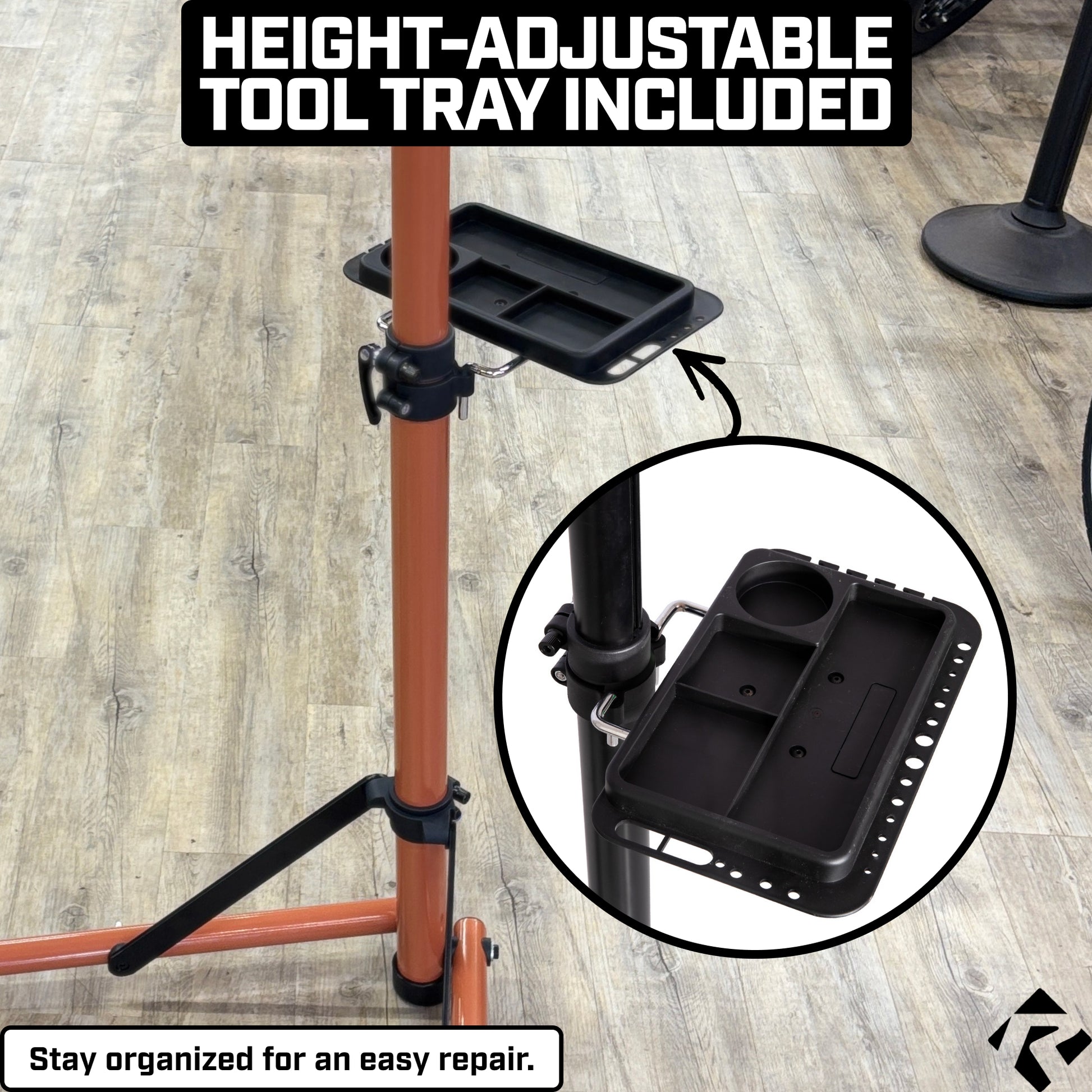 - Magnetic Tool Tray - The removable, height-adjustable magnetic tool tray attaches to the stand’s pole to keep all the tools you need for the job organized and within reach. Its magnetic material also grabs onto bolts and other hardware so they don’t roll away while you’re making your repair.