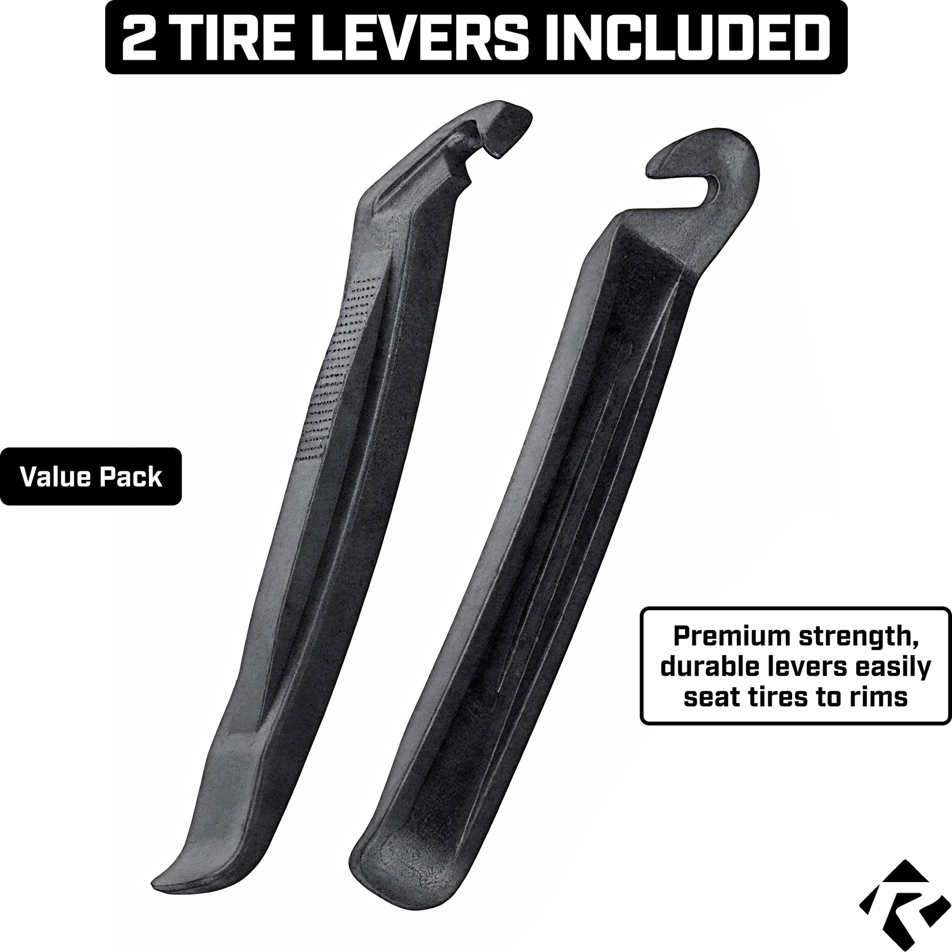 - 2 tire levers included – premium strength, durable levers easily seat tires to rims
